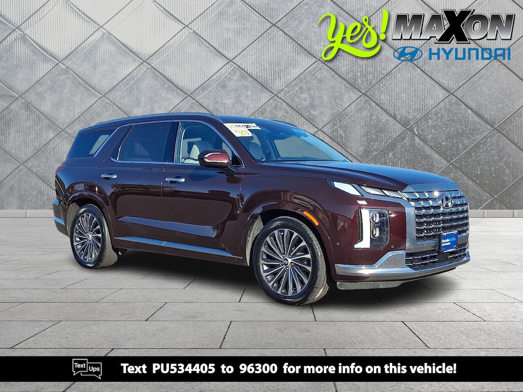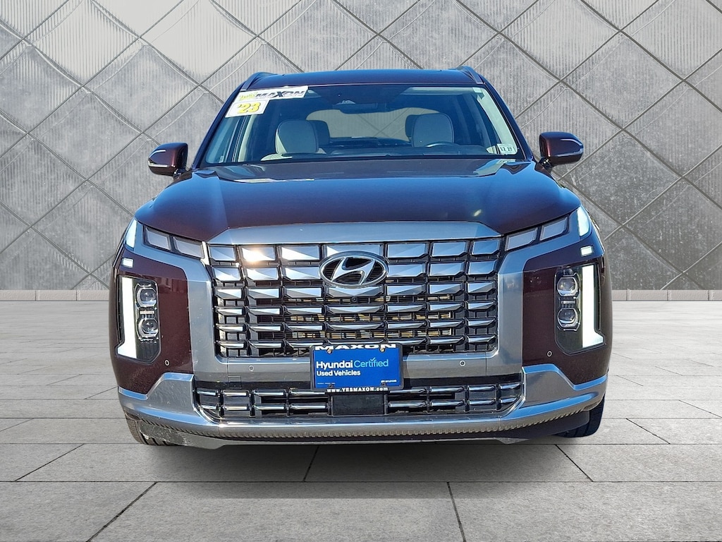 Hyundai Certified, CARFAX 1-Owner. Sierra Burgundy exterior and Navy/Beige interior. Heated Leather Seats, Third Row Seat, Nav System, Moonroof, OPTION GROUP 01, Aluminum Wheels, Quad Bucket Seats, All Wheel Drive. KEY FEATURES INCLUDELeather Seats, Third Row Seat, Navigation, All Wheel Drive, Quad Bucket Seats Hyundai Calligraphy with Sierra Burgundy exterior and Navy/Beige interior features a V6 Cylinder Engine with 291 HP at 6000 RPM*. OPTION PACKAGESOPTION GROUP 01 standard equipment. PRICED TO MOVEThis Palisade is priced $3,300 below J.D. Power Retail. SHOP WITH CONFIDENCE173-point mechanical, safety and appearance inspection by Hyundai-certified technicians, Rental car reimbursement provided during covered repairs, 10-Year/ 100,000 mile Powertrain Limited Warranty from original in-service date. Hyundai Certified Used Vehicles carry the remainder 5-year/60,000-mile New Vehicle Limited Warranty, Reimbursement (includes towing, jump starts, tire service, lockout service and fuel delivery), Complimentary 10-year/Unlimited Mileage Roadside Assistance with Rental Car and Trip Interruption, 3-Months of No-Charge SiriusXM© Satellite Radio Platinum Plan Trial and, Travel interruption service when a covered breakdown occurs 150 miles or more away from home, A CarFax Vehicle History Report is included with all CPO vehicles Pricing analysis performed on 11/5/2025. Horsepower calculations based on trim engine configuration. Please confirm the accuracy of the included equipment by calling us prior to purchase.